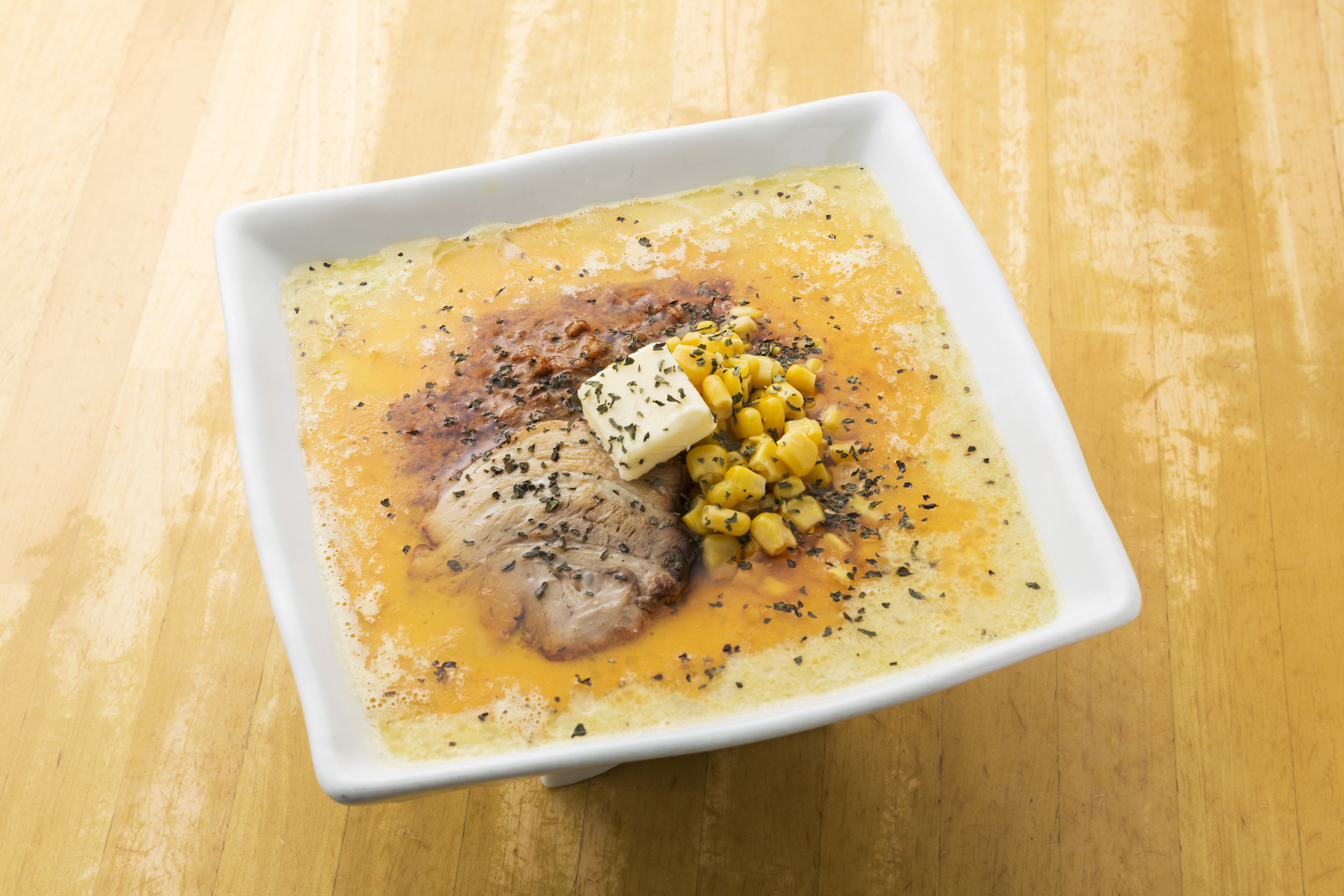 三河といえば、八丁味噌。寒い季節に飲みたくなる濃厚なコーンポタージュがまさかのコラボレーション。旨味が凝縮したコク深いスープを是非お楽しみ下さい。
